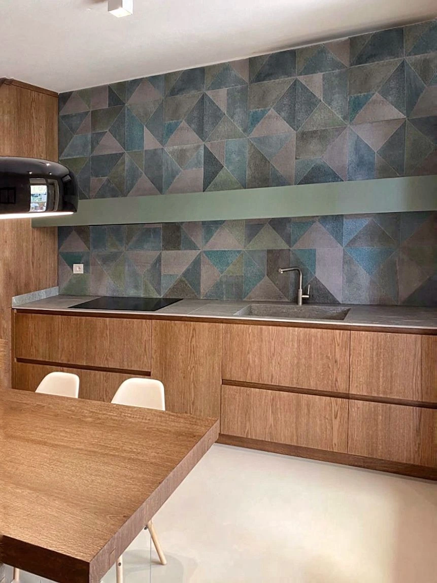 Un impatto deciso e autentico grazie alle piastrelle in pietra lavica siciliana. Ogni singolo