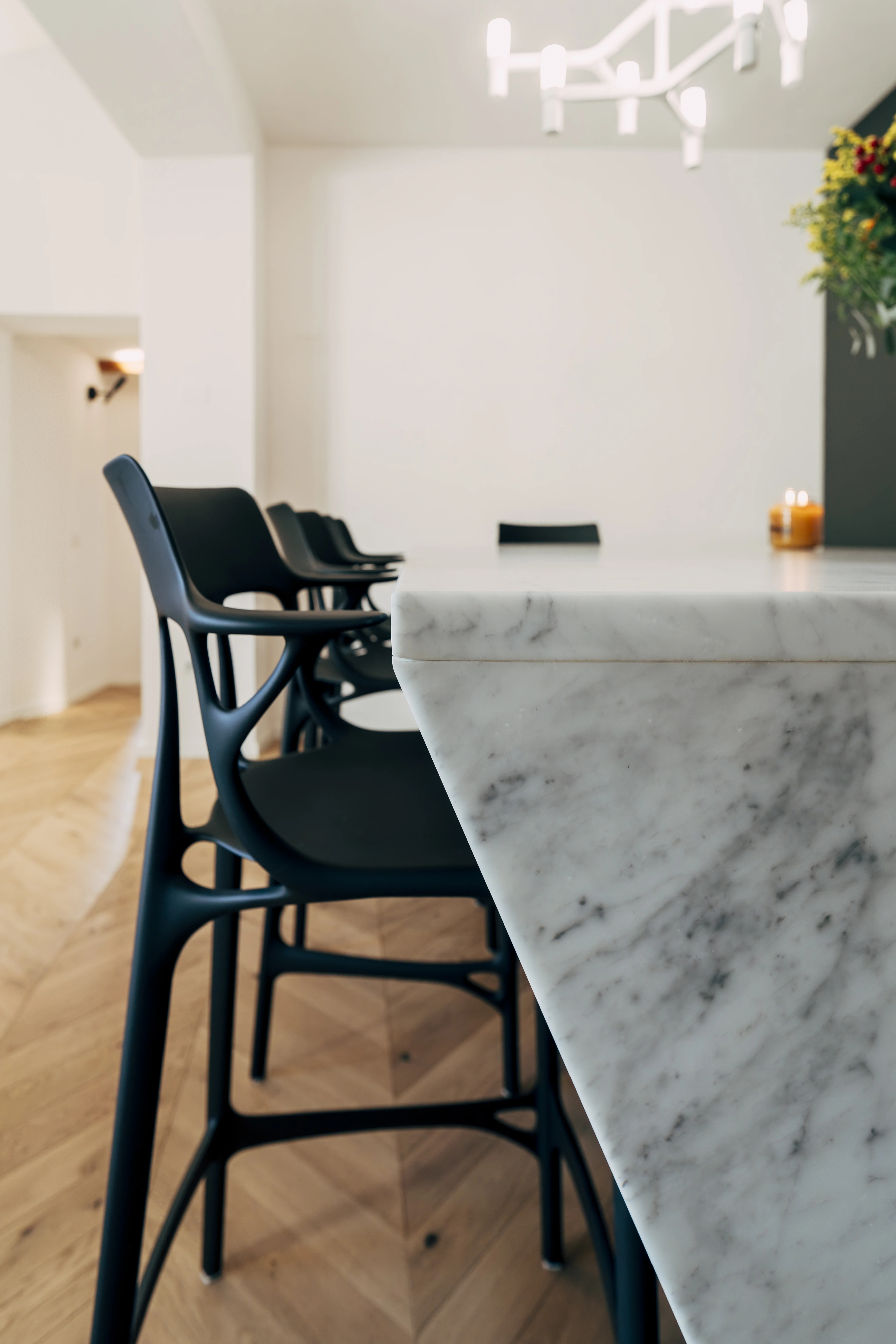 Il progetto nasce dalla ricerca di materiale naturali come il Marmo di Carrara in contrasto con il