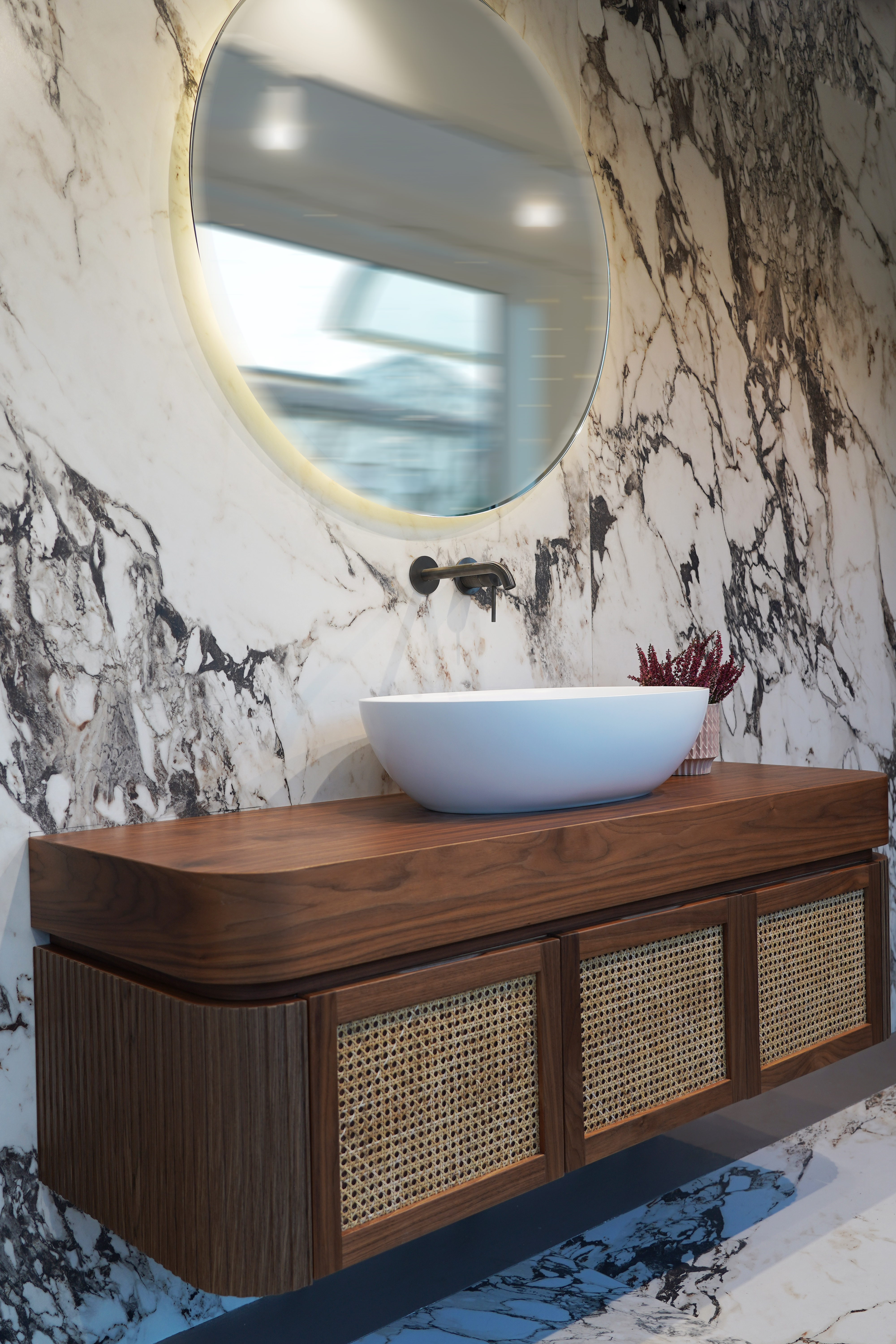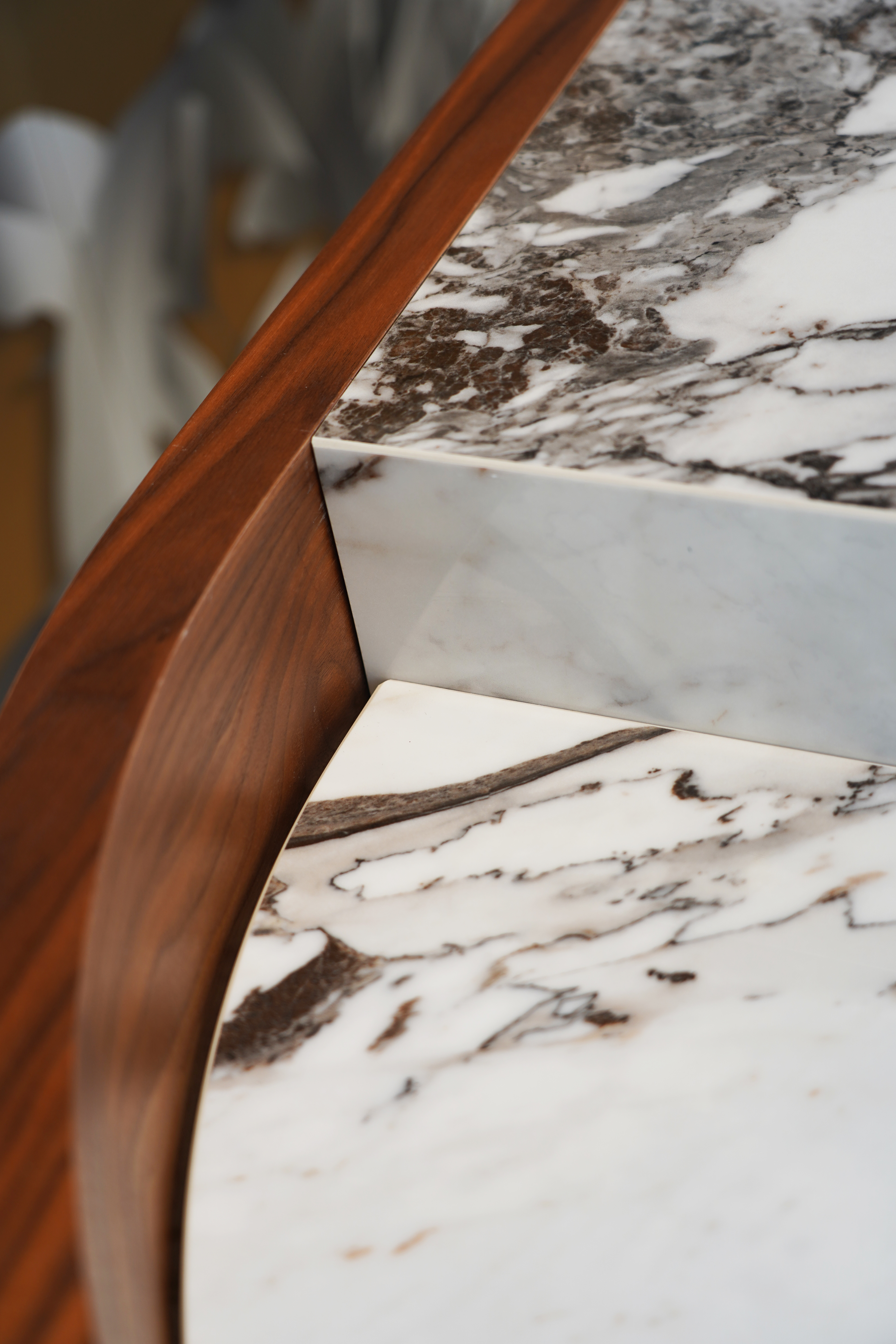 all'acqua dell'Elba, così come il legno in noce canaletto che ricorda i boschi sulle colline elbane.
