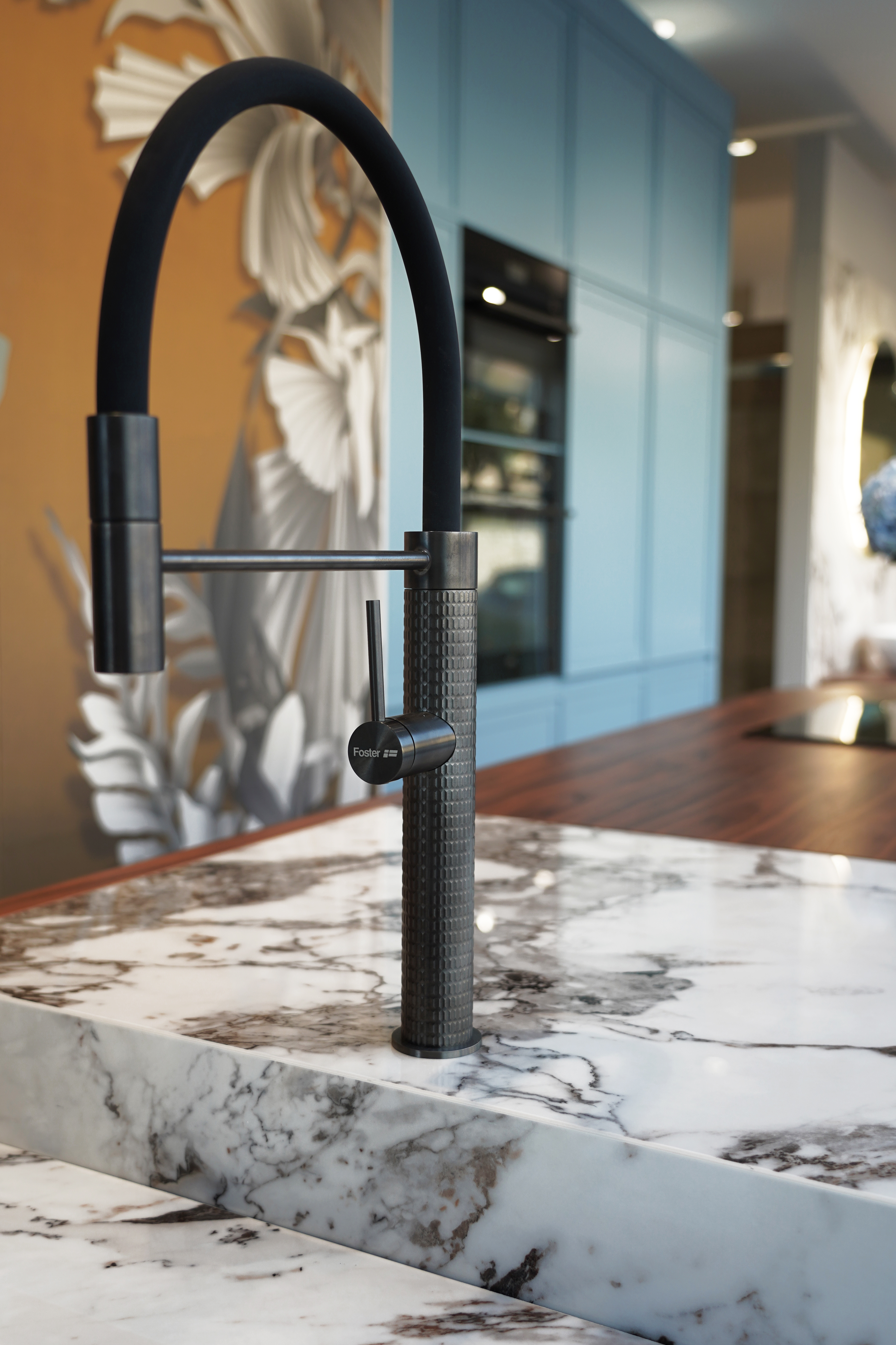 Il bancone della cucina è stato studiato come un puro oggetto di design, in modo da poterlo collocare